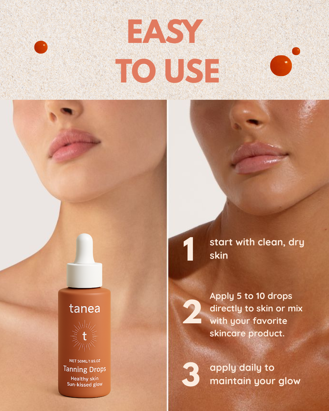 - Sun or no sun, enjoy a golden glow all year round.
