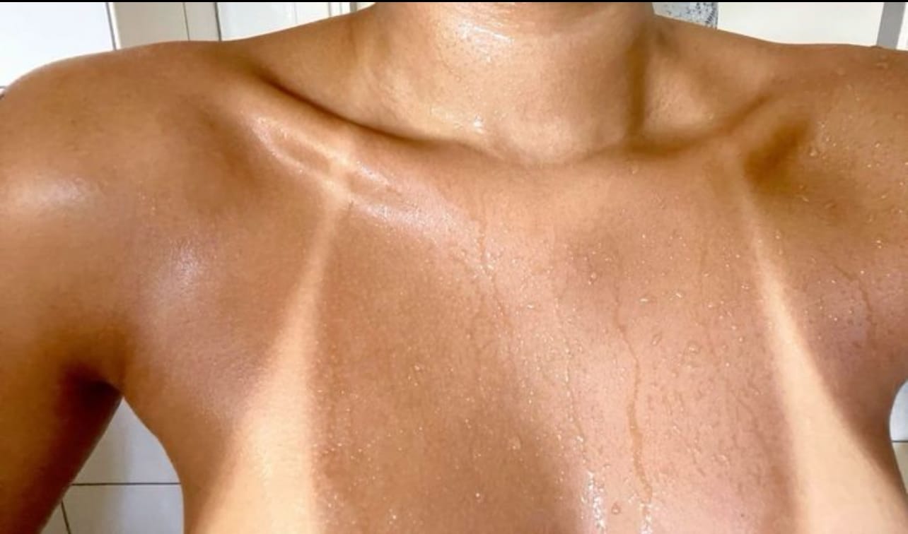 Otrolig brun utan sol-olja. Wow-faktor, strålande solbränna.